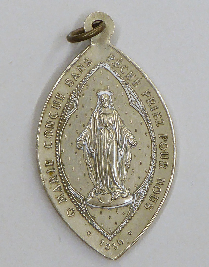 Devotiepenning, amandelvormig, wonderdadige medaille, met Maria Onbevlekt Ontvangen, kz. Aloysius van Gonzaga