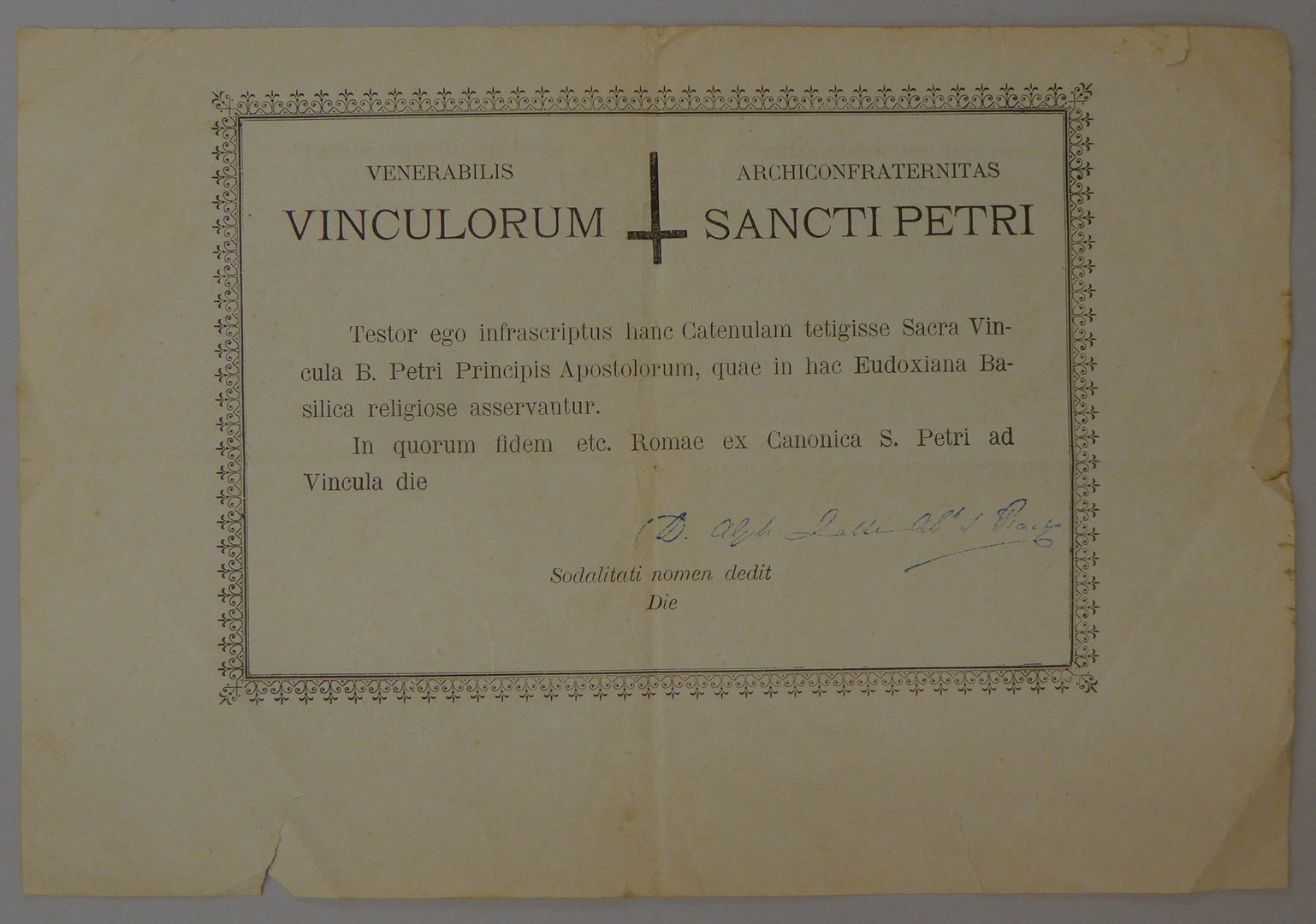 Certificaat behorend bij Petrusketting