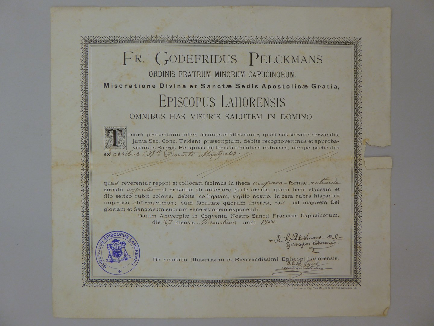 Echtheidsverklaring bij RMCC v301.6a met "Fr. Godefridus Pelckmans ..."