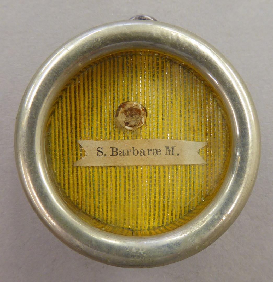 Reliekmedaillon met botreliek van H. Barbara