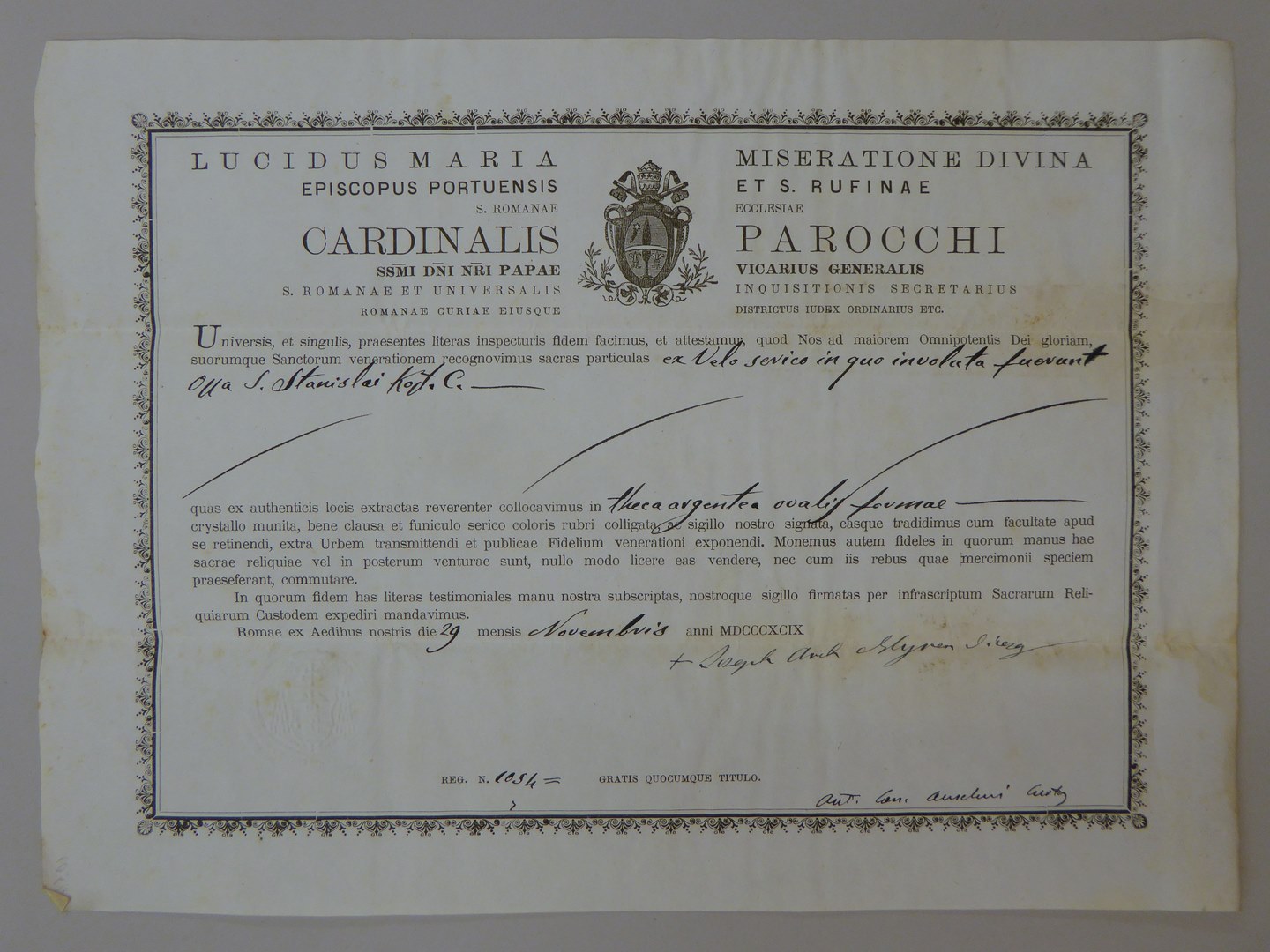 Echtheidsverklaring bij RMCC v301.8a met "Lucidus Maria ... Parocchi ..."
