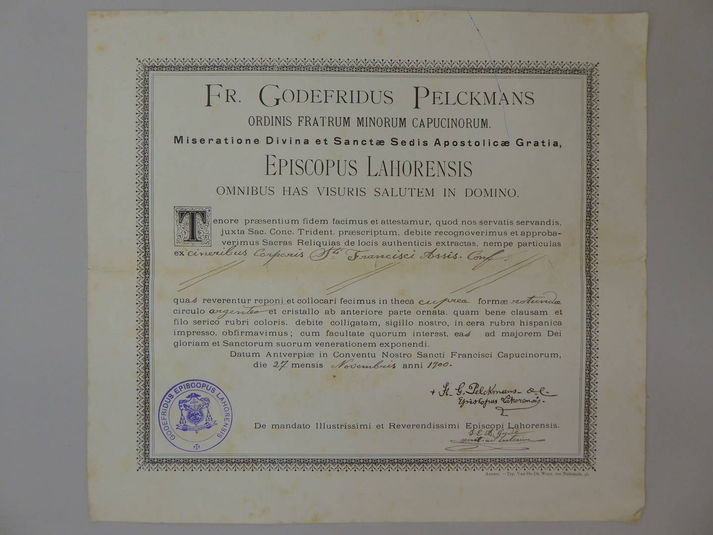 Echtheidsverklaring bij RMCC v301.9a met "Fr. Godefridus Pelckmans ..."