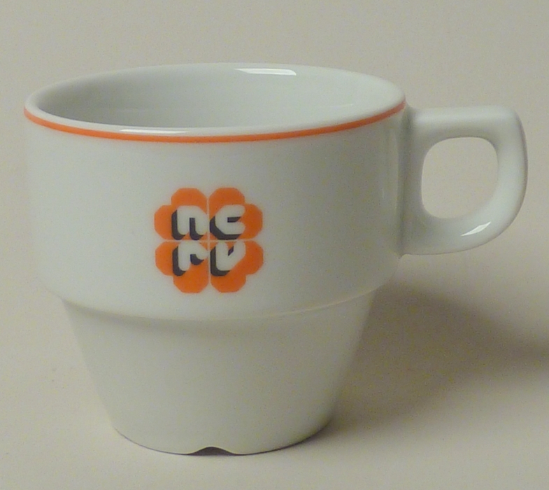 Kopje, wit met oranje rand en logo NCRV