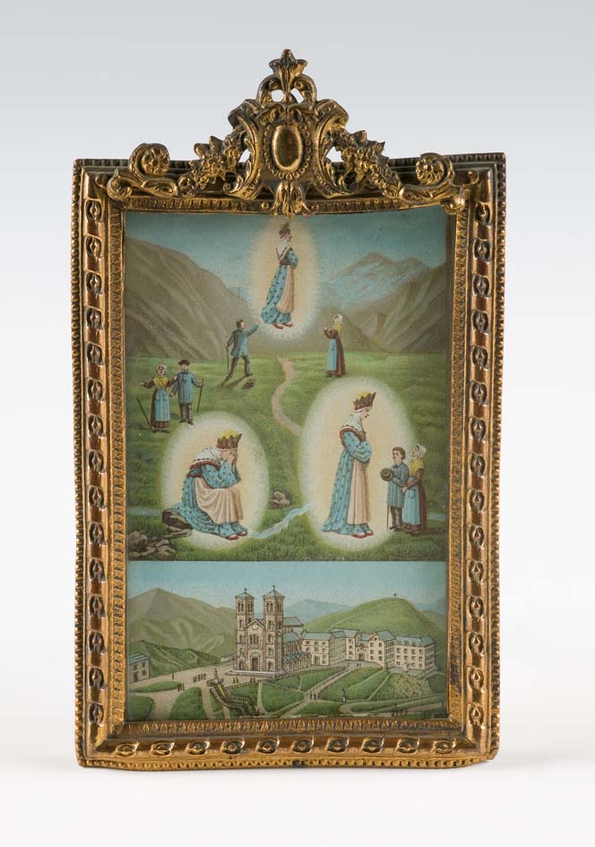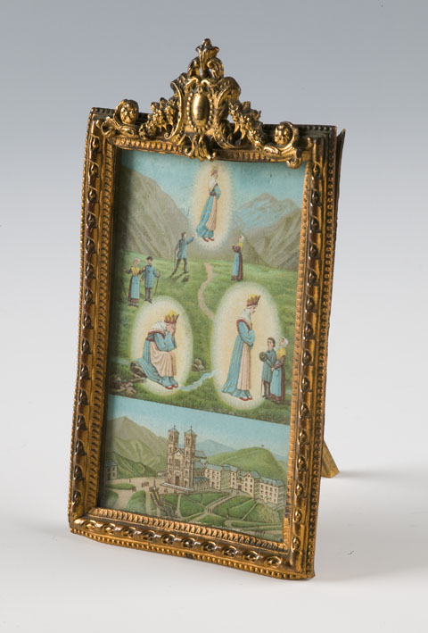 Aflaat in lijst met voorstelling in vier scènes van Maria de la Salette