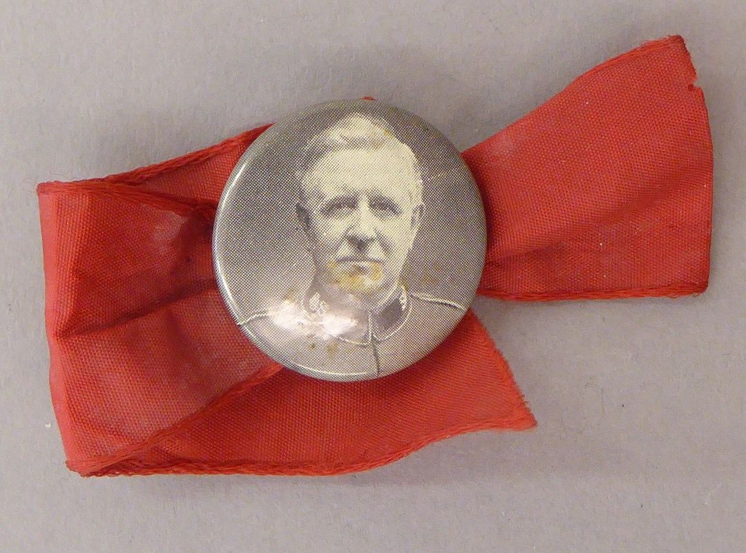 Leger des Heils: button met portret heilssoldaat, met rood lint