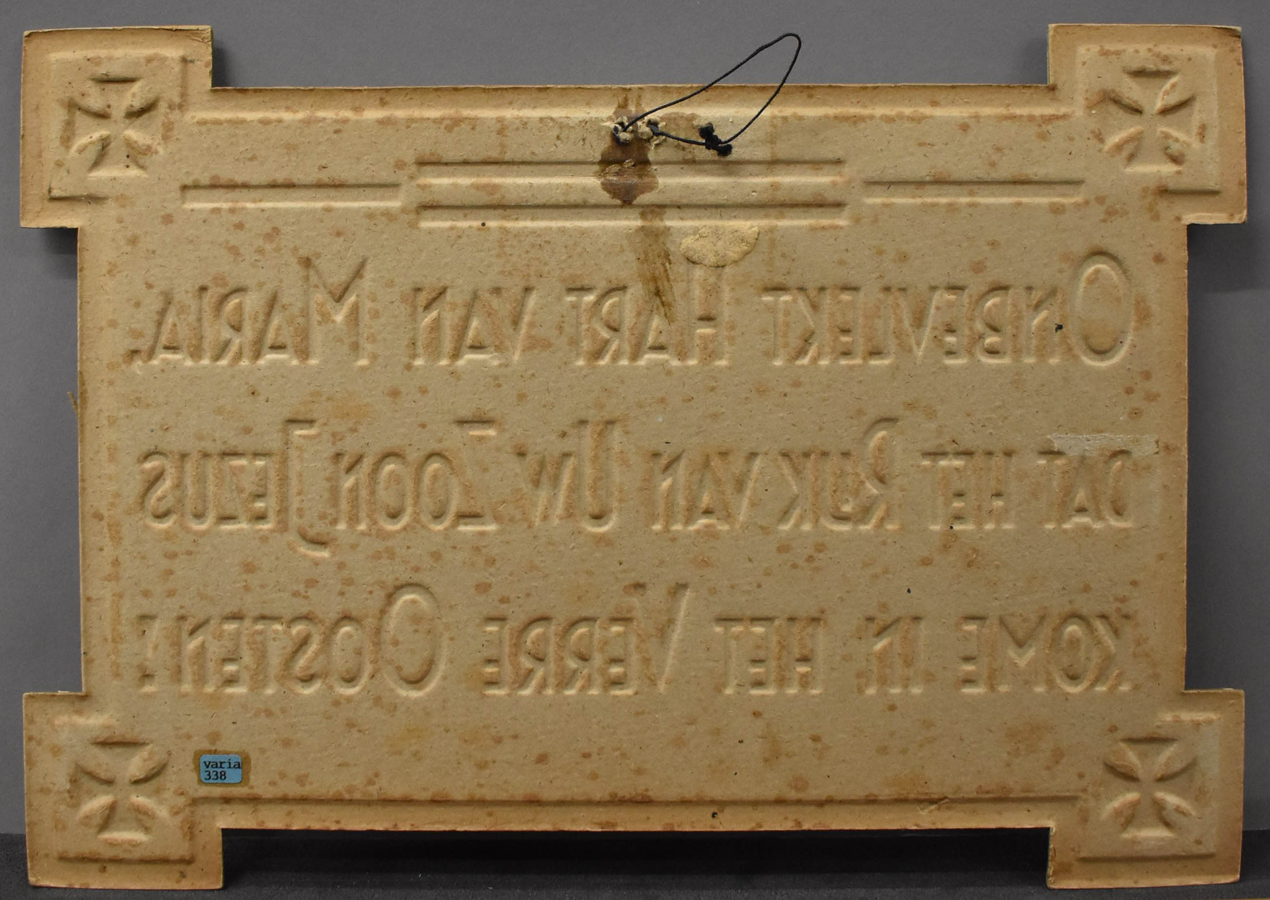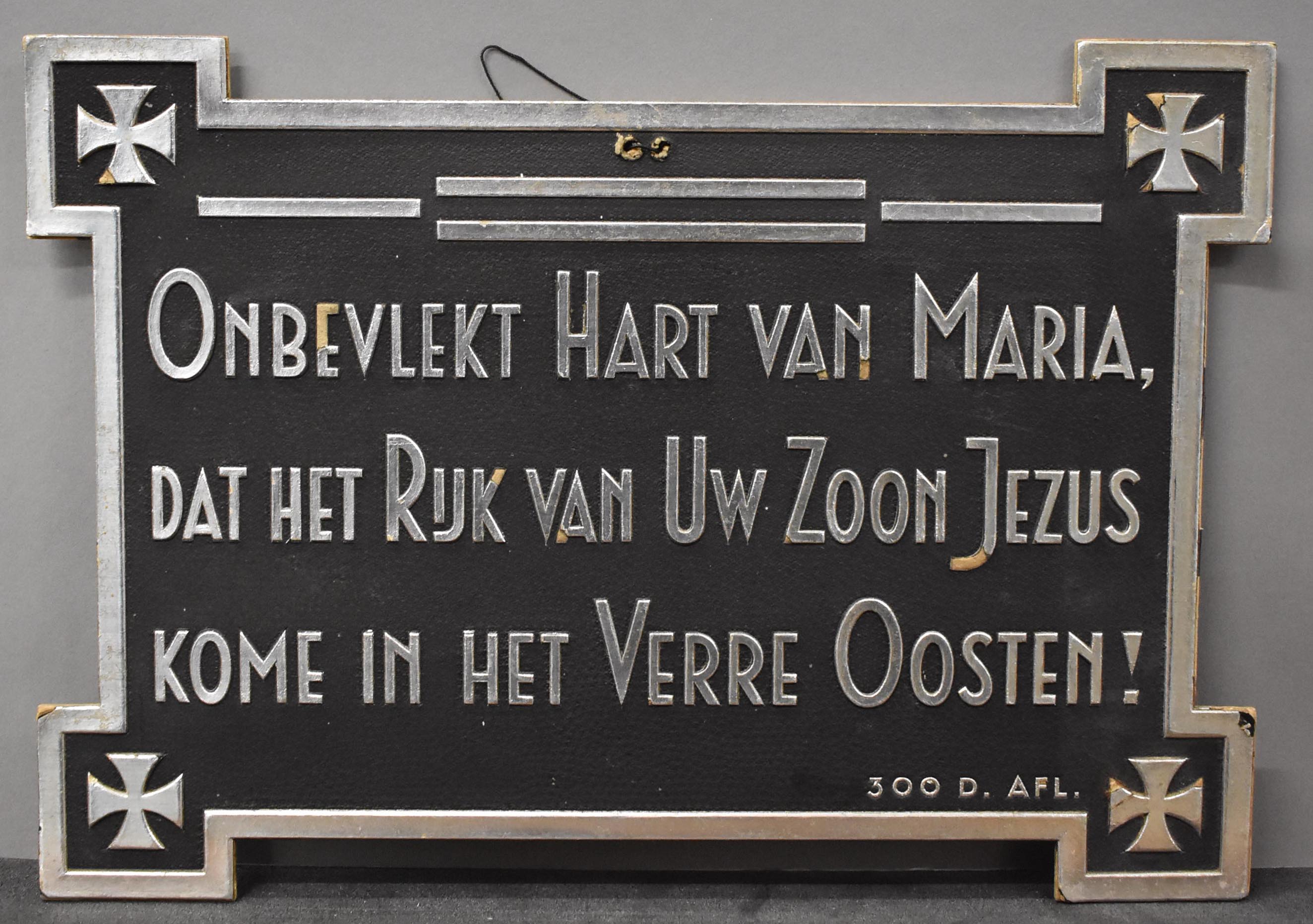 Tekstbord met "Onbevlekt Hart van Maria, dat het Rijk van Uw Zoon Jezus kome in het Verre Oosten!"
