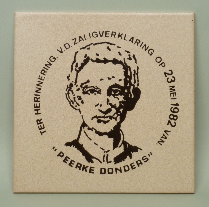 Wandtegel "Ter herinnering v.d. zaligverklaring op 23 mei 1982 van Peerke Donders"