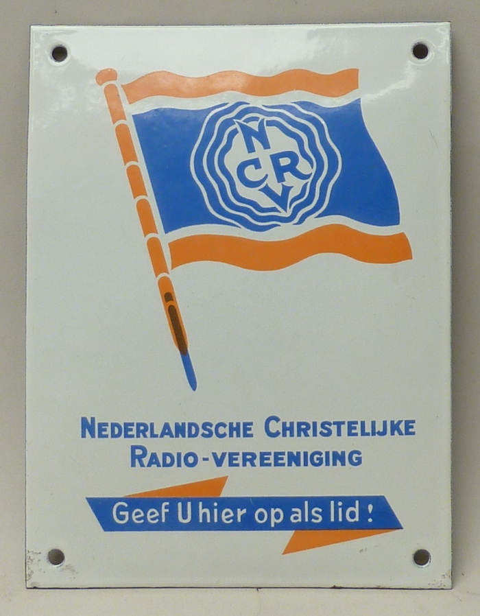 NCRV propagandamateriaal: tekstbord in email met NCRV-vlag en o.a. met "Geef U hier op als lid!"