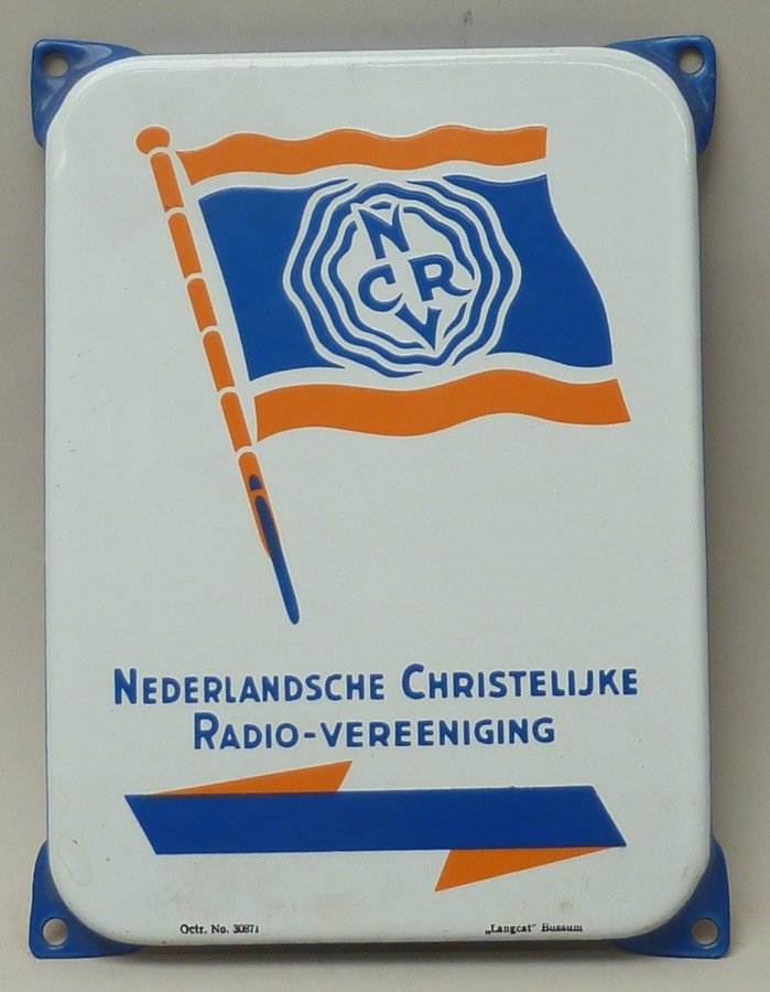 NCRV propagandamateriaal: tekstbord in email met NCRV-vlag met "Nederlandsche Christelijke Radio..."