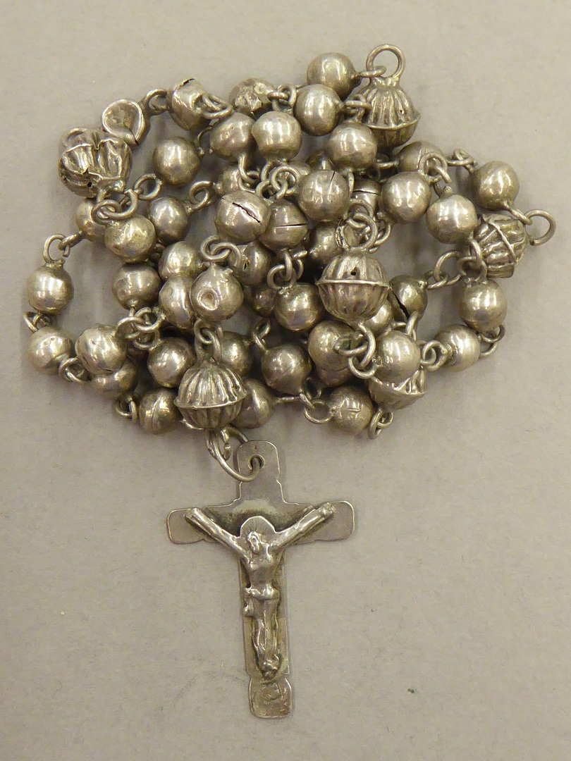 Rozenkrans van zilveren kraaltjes, met zilveren kruisje