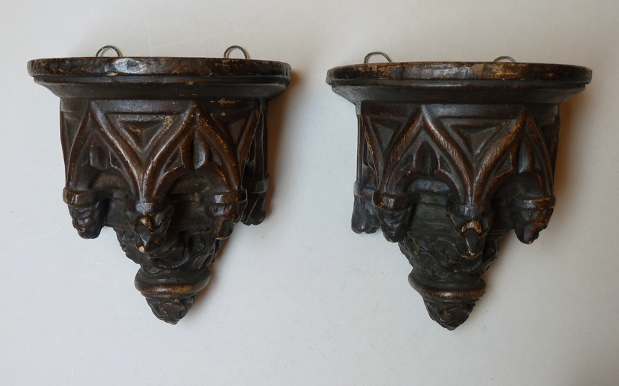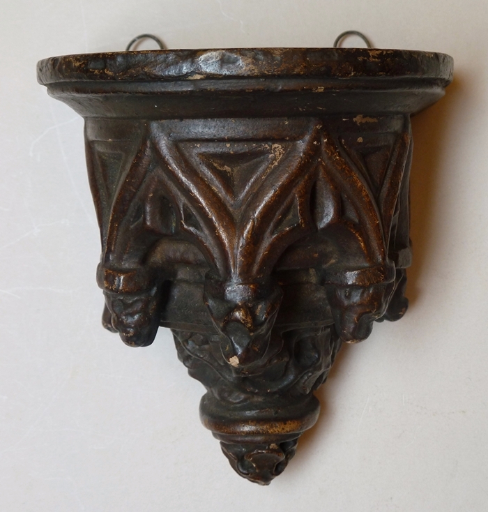 Sokkel met gotische ornamentiek, bruin geverfd