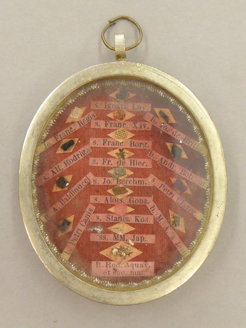 Reliekmedaillon, ovaal met gladde rand, met zeventien relieken