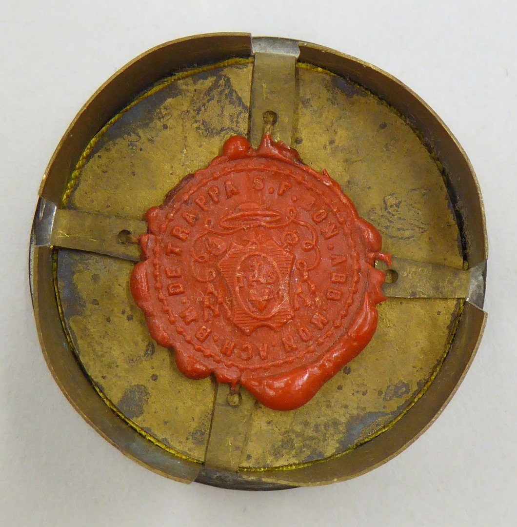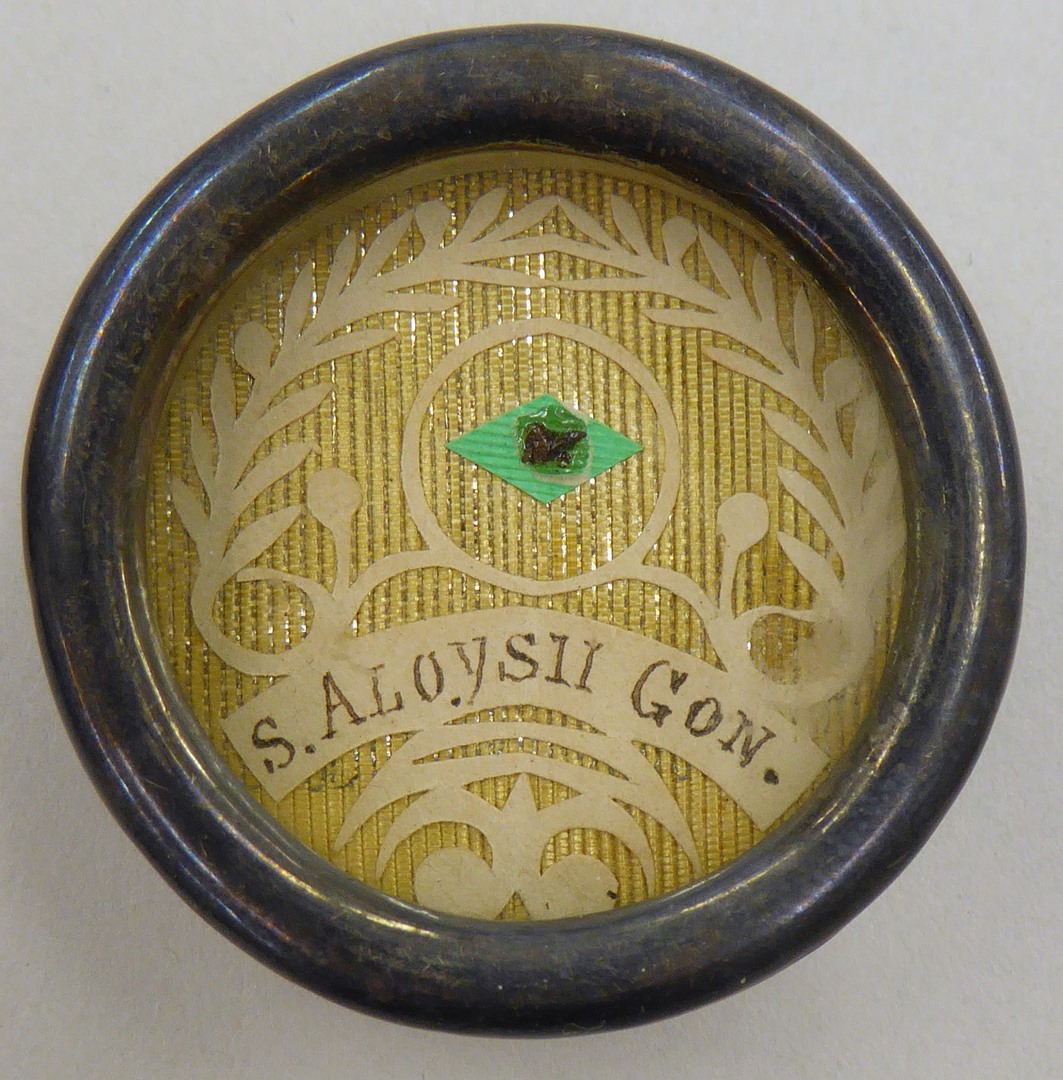 Reliekmedaillon met reliek van H. Aloysius Gonzaga met knipwerk