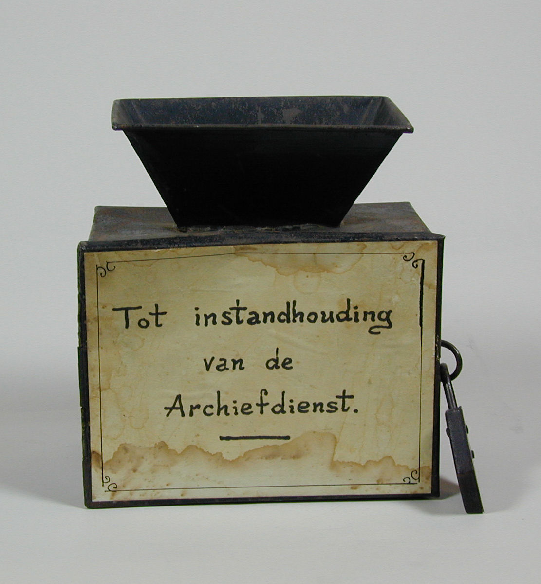 Collectebus met "Tot instandhouding van de Archiefdienst"