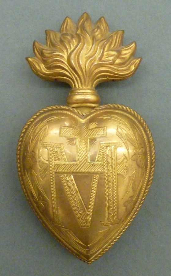 Heilig Hart van Maria in vorm van hol koperen hart met deksel