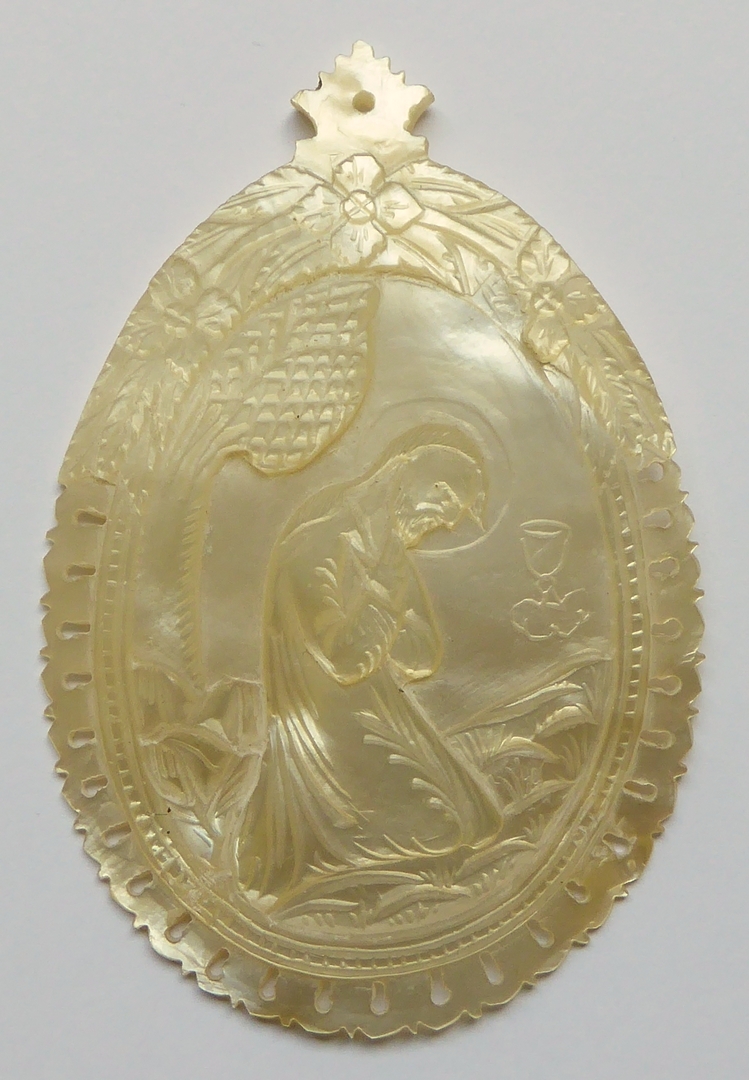 Ovaal reliëf met Christus in de hof van Gethsemane met de kelk