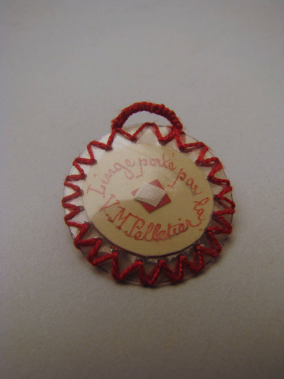 Stukje linnen gedragen door Maria di S. Eufrasia Pelletier met rood borduurrandje