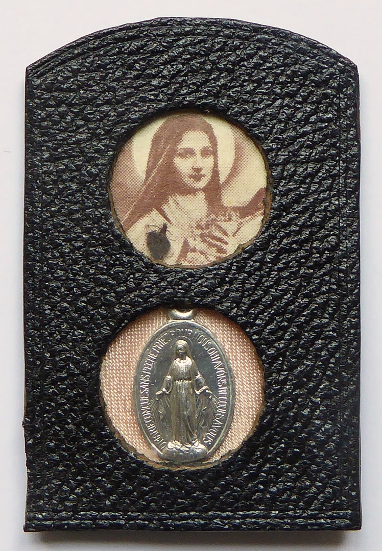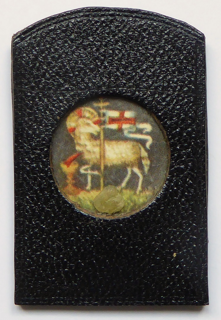 Hoesje met hangertje met H. Theresia en Lam Gods met kruisvaan