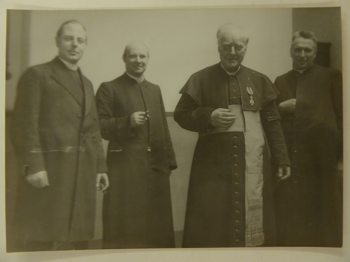 Pastoor Stolk (1853-1939), laatste kapelaan Catharinaparochie te Amsterdam, en drie personen
