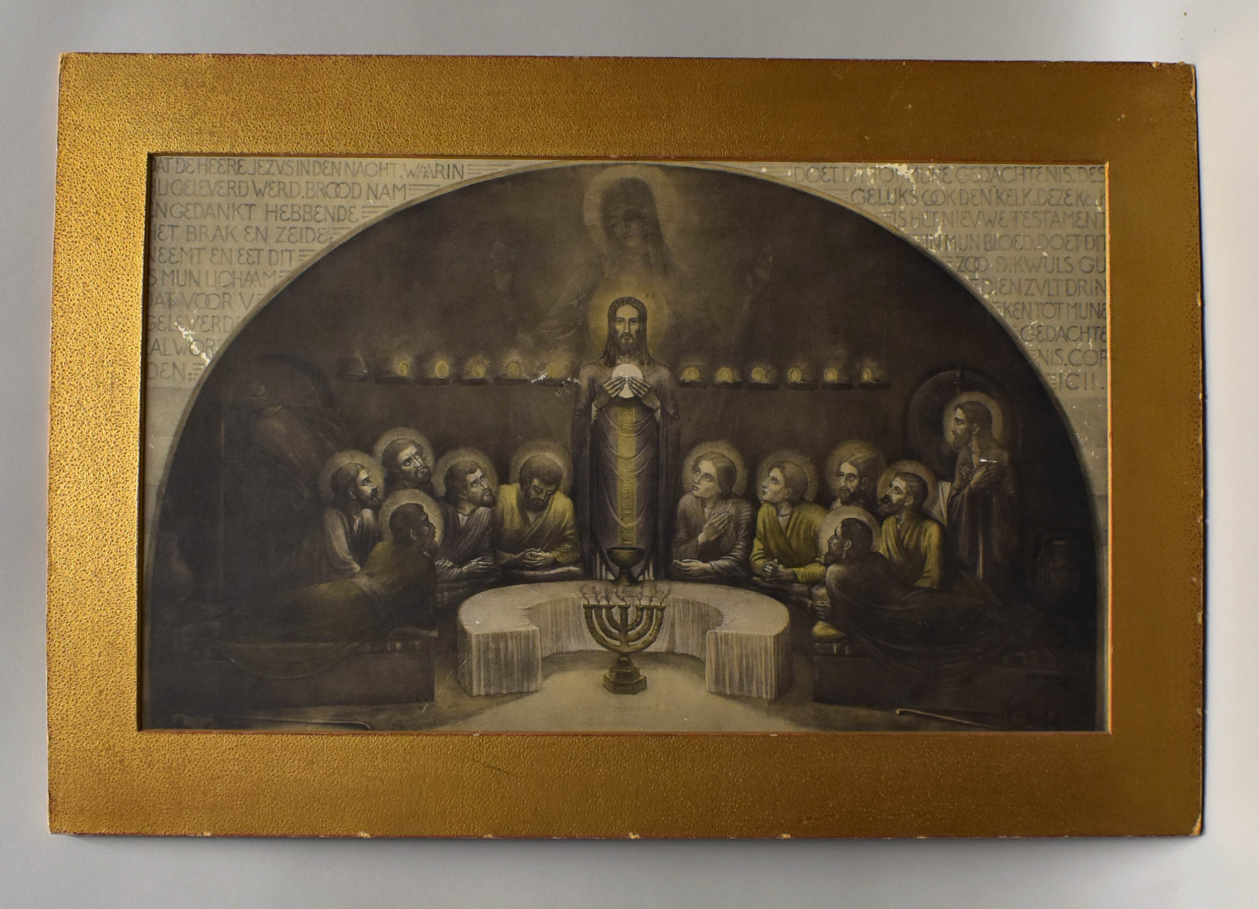 Laatste avondmaal en Christus met hostie: sacrament H. Eucharistie