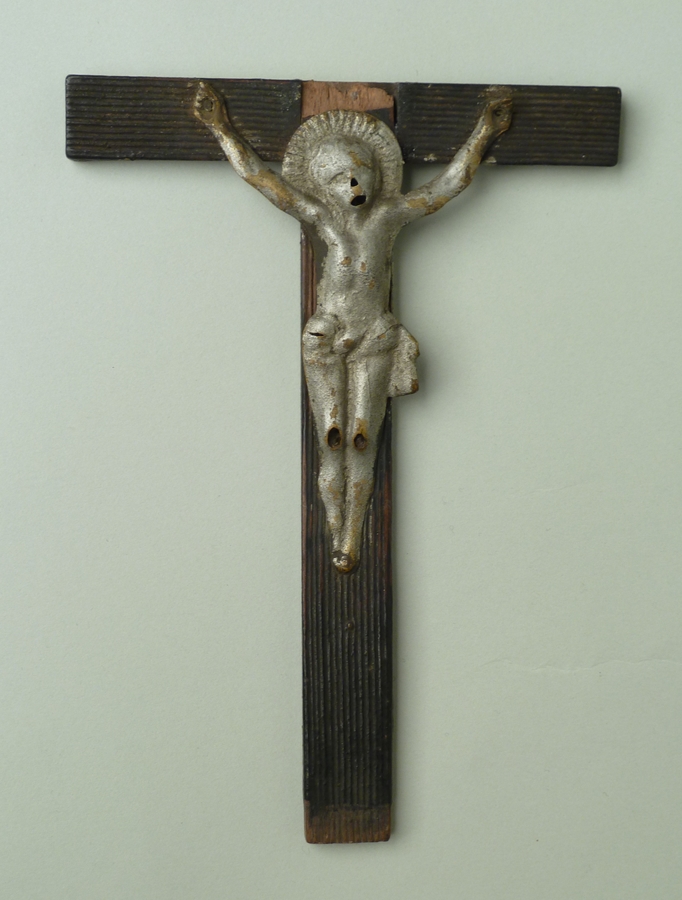Zwartgeverfd kruis met gestanst corpus, bovenstuk kruis ontbreekt