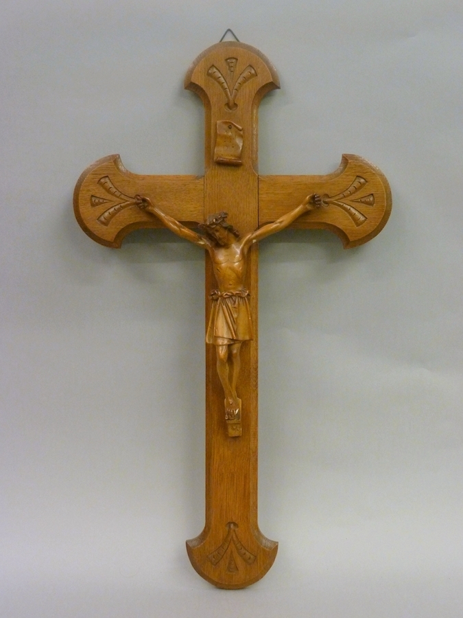 Kruis met halfronde uiteinden, bruin geschilderd corpus