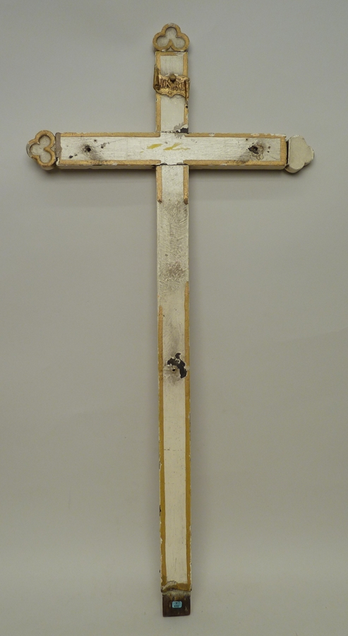 Witgeschilderd kruis met klaverbladvormige uiteinden, corpus ontbreekt