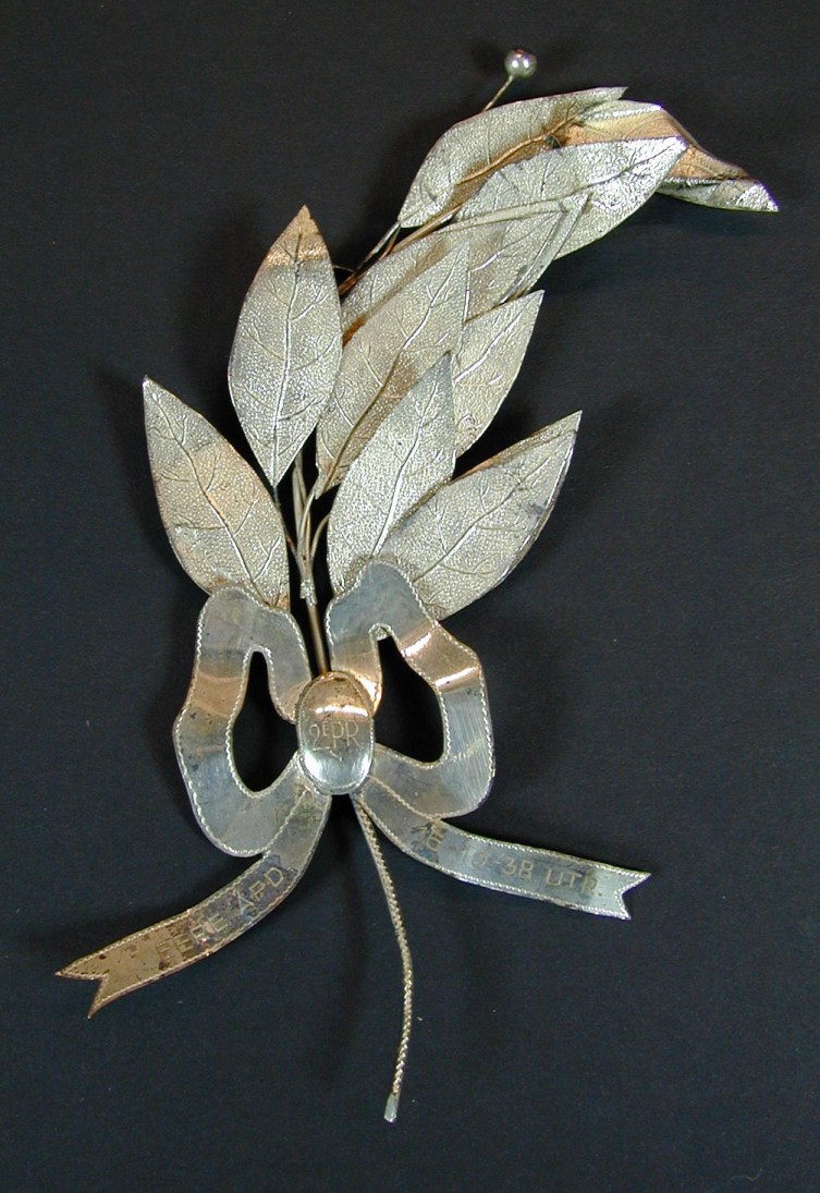 Fanfareconcours 2e prijs Utrecht: zilveren lauwertak met strik om aan vaandel te bevestigen