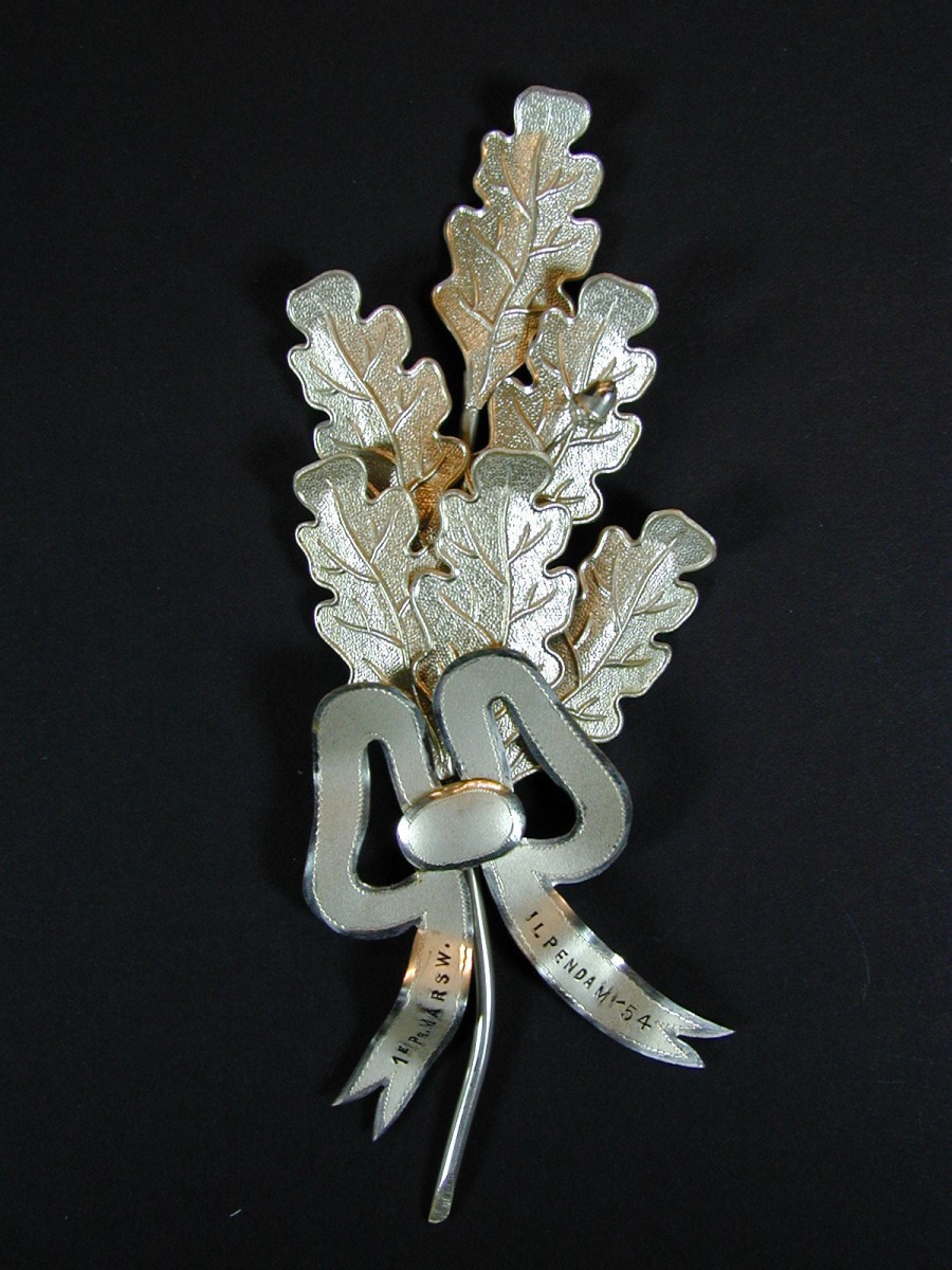 Fanfareconcours, 1e prijs Ilpendam: zilveren eiketak om aan vaandel te bevestigen