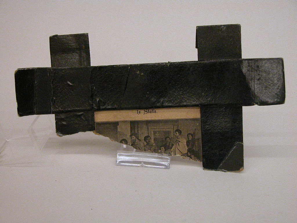 Kruiswegstatie in lijst van zwart kleefband: eerste statie, Jezus wordt ter dood veroordeeld