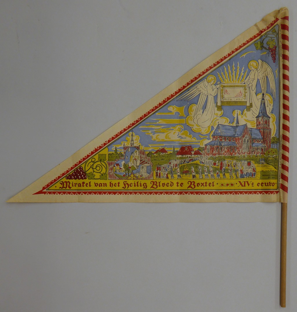 Bedevaartvaan met afbeelding mirakel van het Heilig Bloed te Boxtel