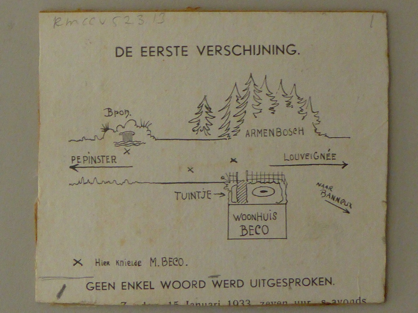 Kaartje met plek waar O.L.V. van Banneux verscheen