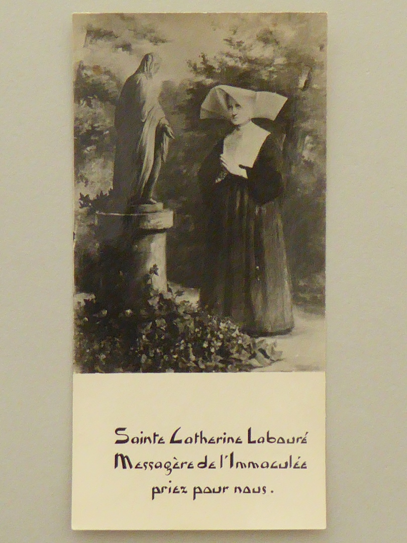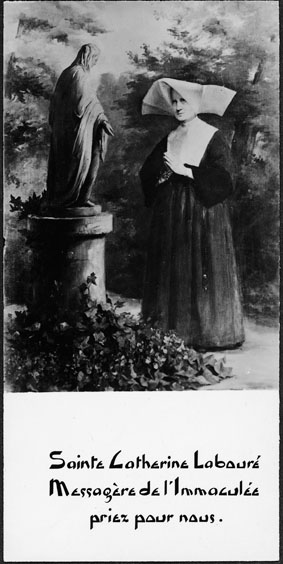 Prentbriefkaart(?) met Catharina Labouré, met "Sainte Catherine Labouré messagère de l'Immaculée priez pour nous"