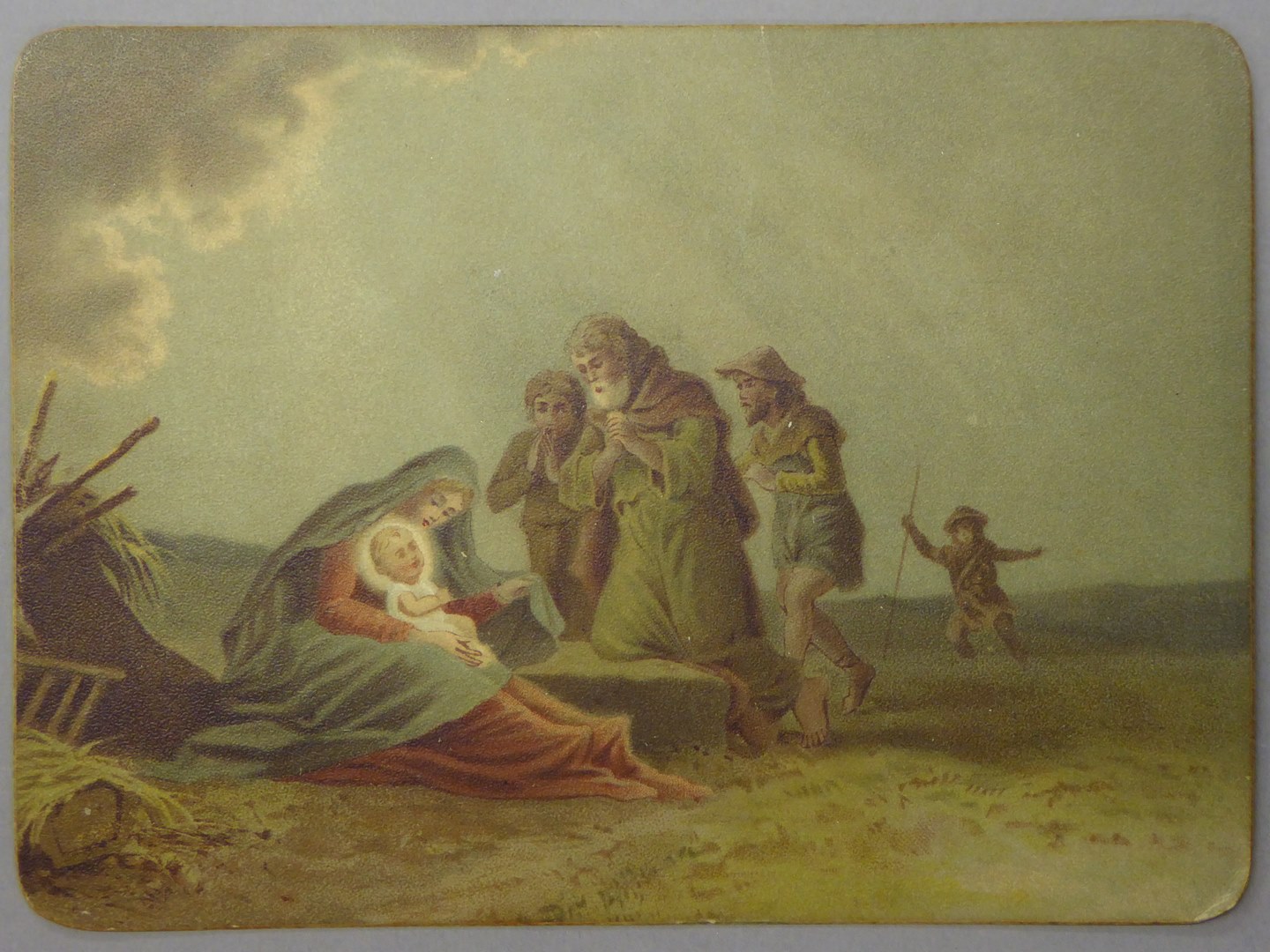 Prentbriefkaart, kerstkaart aanbidding der herders