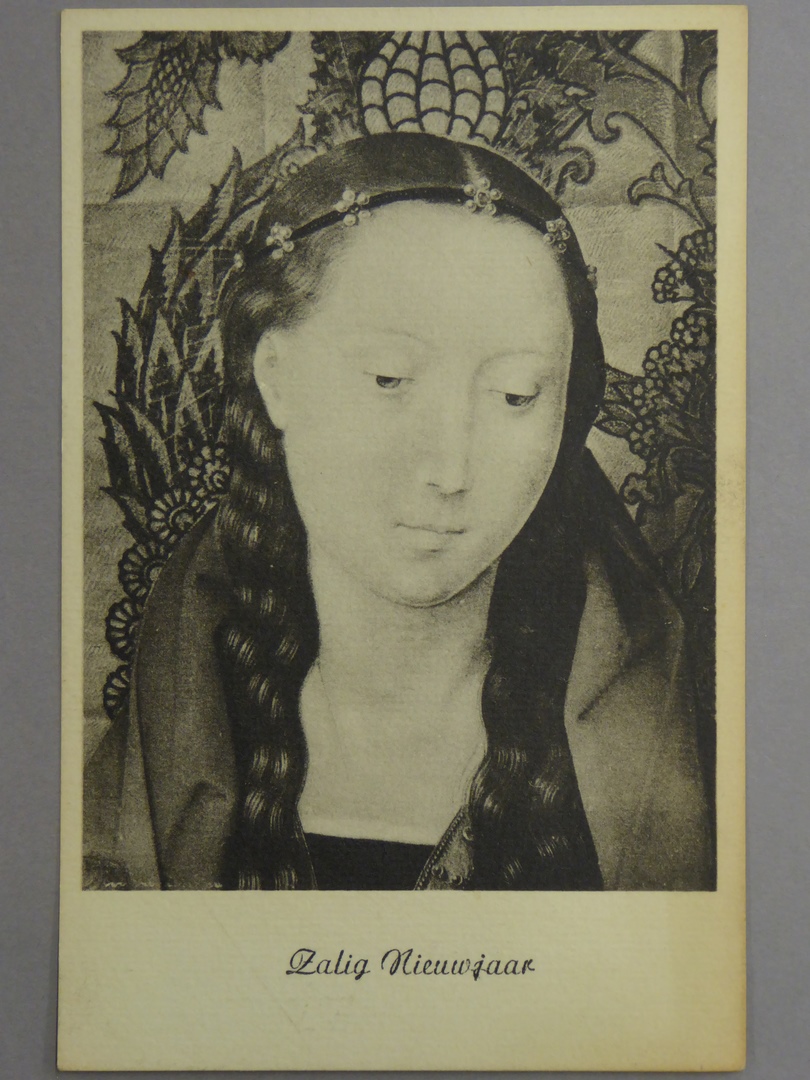 Prentbriefkaart, nieuwjaarskaart met portret van Maria
