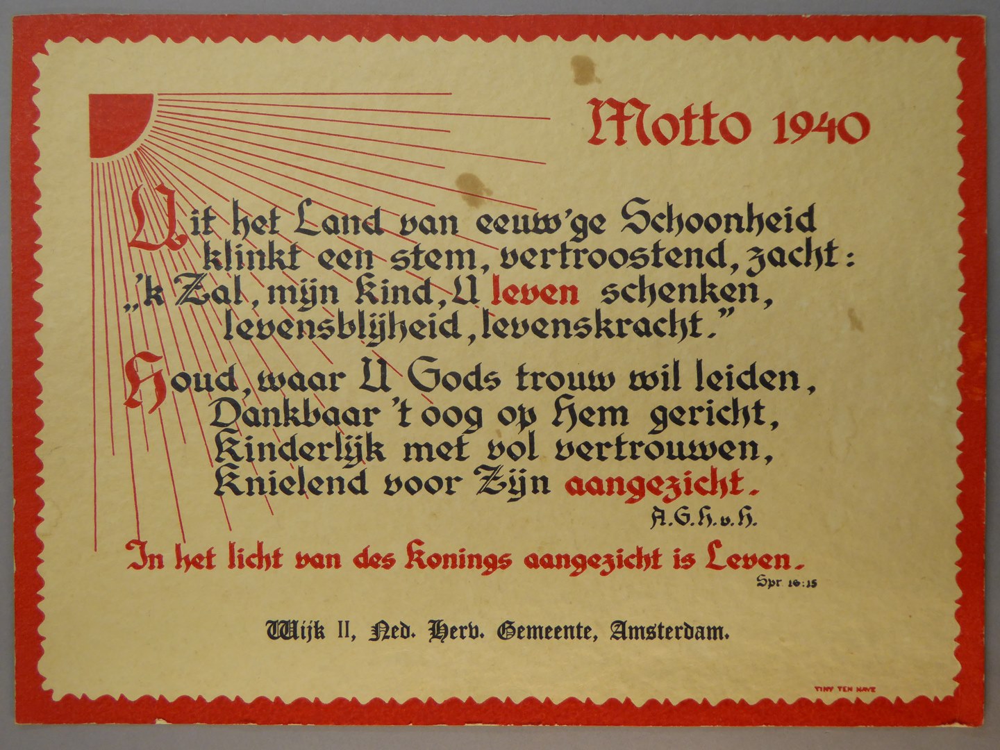 Wandtekst "Motto 1940", Wijk II, Ned. Herv. Gemeente Amsterdam