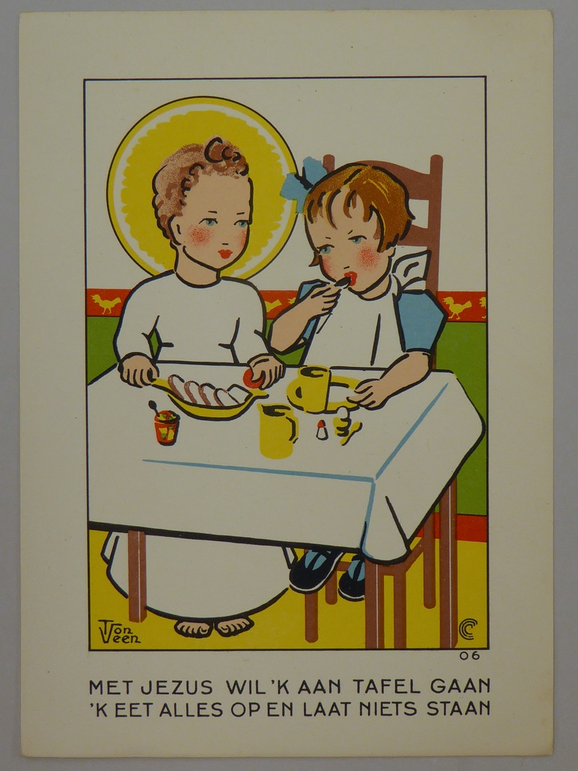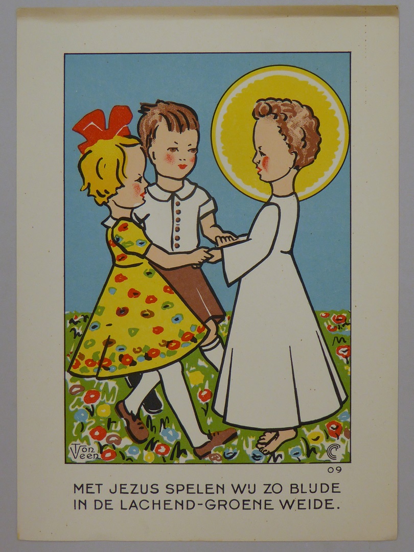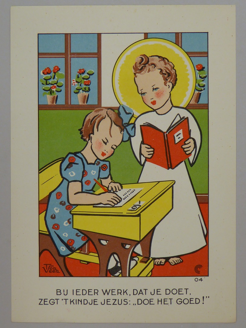 "Het kinderleven", tien voorstellingen van kinderen met het Jezuskind en spreuk