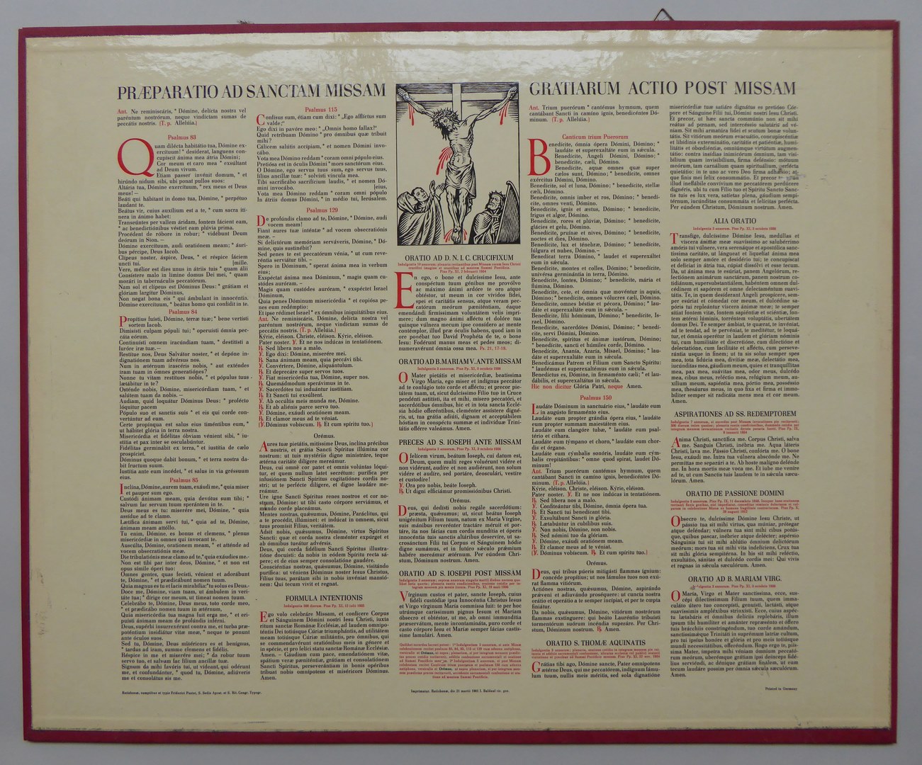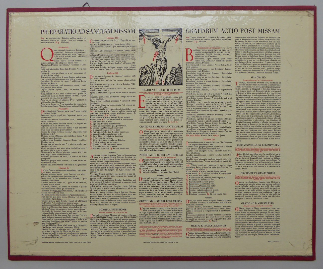 Gebedsplaat (2 stuks) met "Praeparatio ad sanctam missam" en gekruisigde Christus