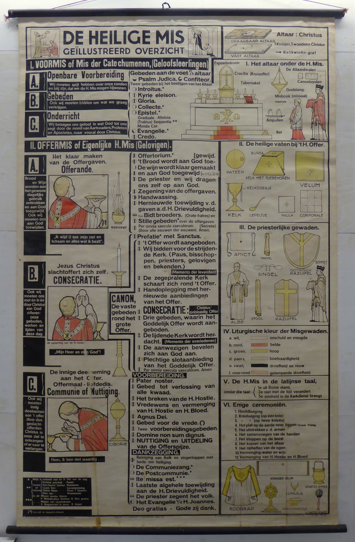Wandplaat met uitleg over de mis met "De heilige mis geïllustreerd overzicht"