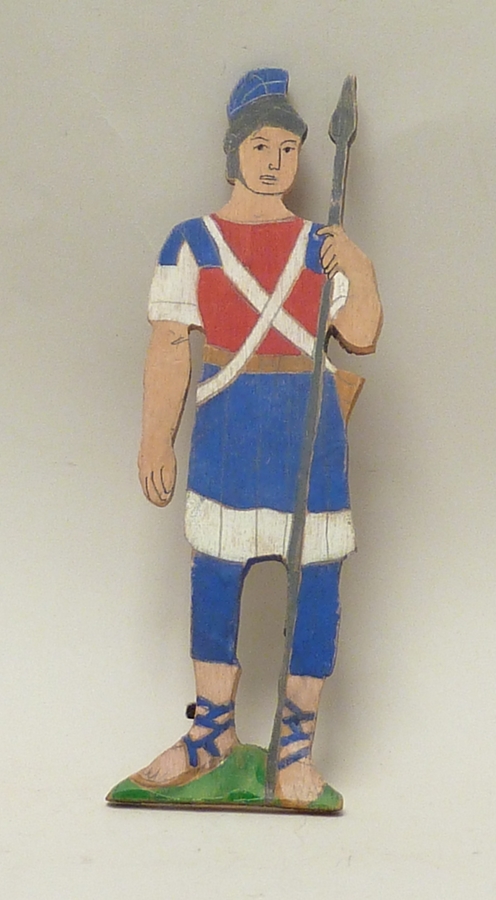 Gefiguurzaagde soldaat met lans in linkerhand, wachter aan het graf