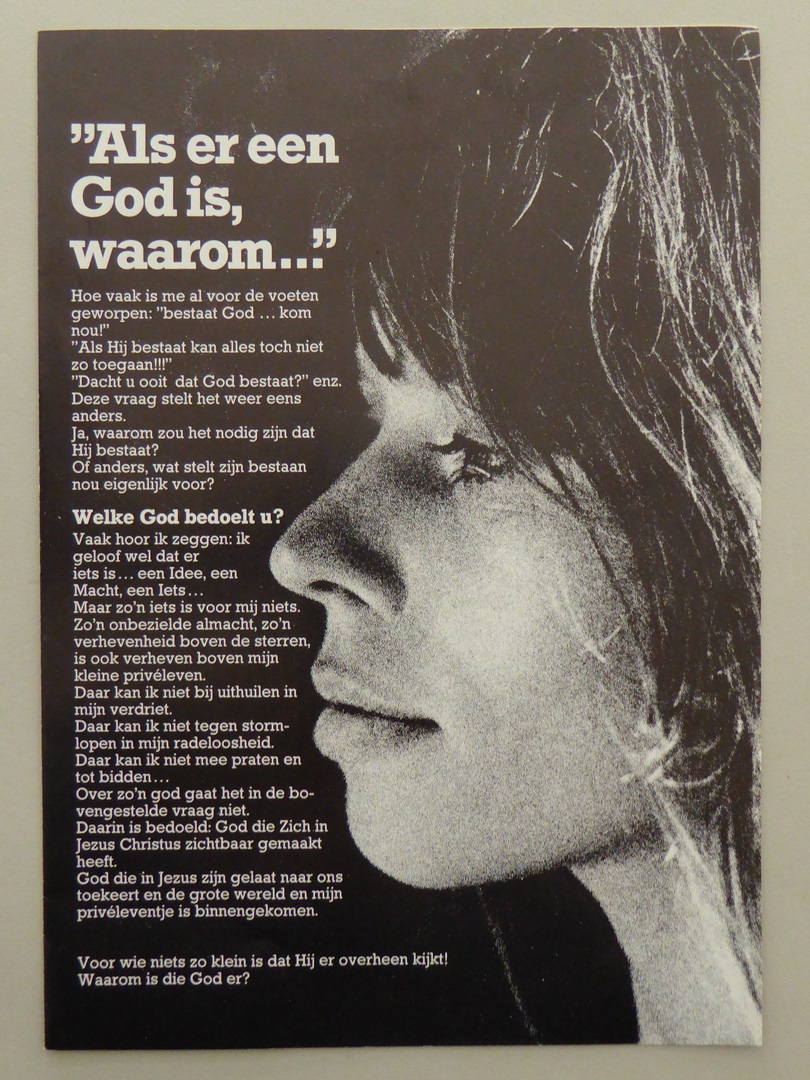 Folder met meisjesportret en profil, met "Als er een God is, waarom ..."
