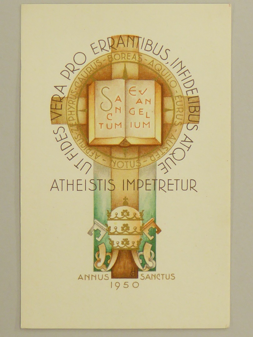 Prentbriefkaart uitgegeven t.g.v. het Heilig Jaar 1950 met "Ut fides vera pro errantibus, ..."