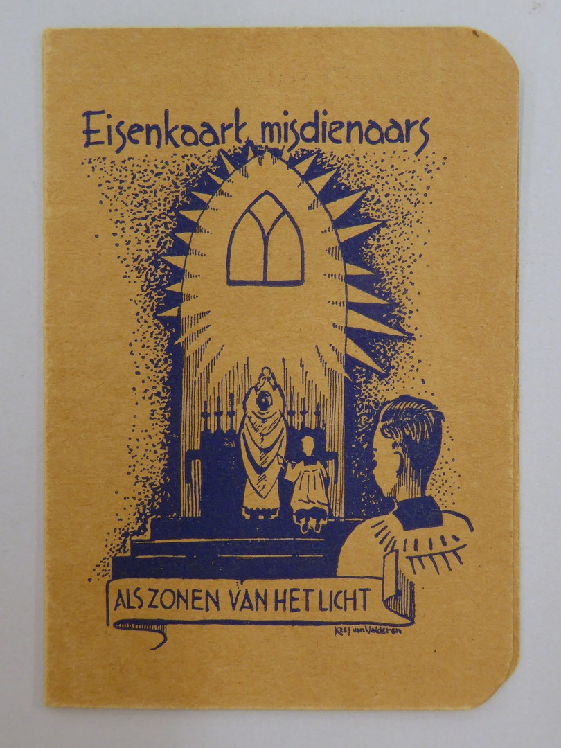 Eisenkaart misdienaars Katholiek 'Serviam' Brakkenstein van P. v.d. Bos, gedrukt in blauw
