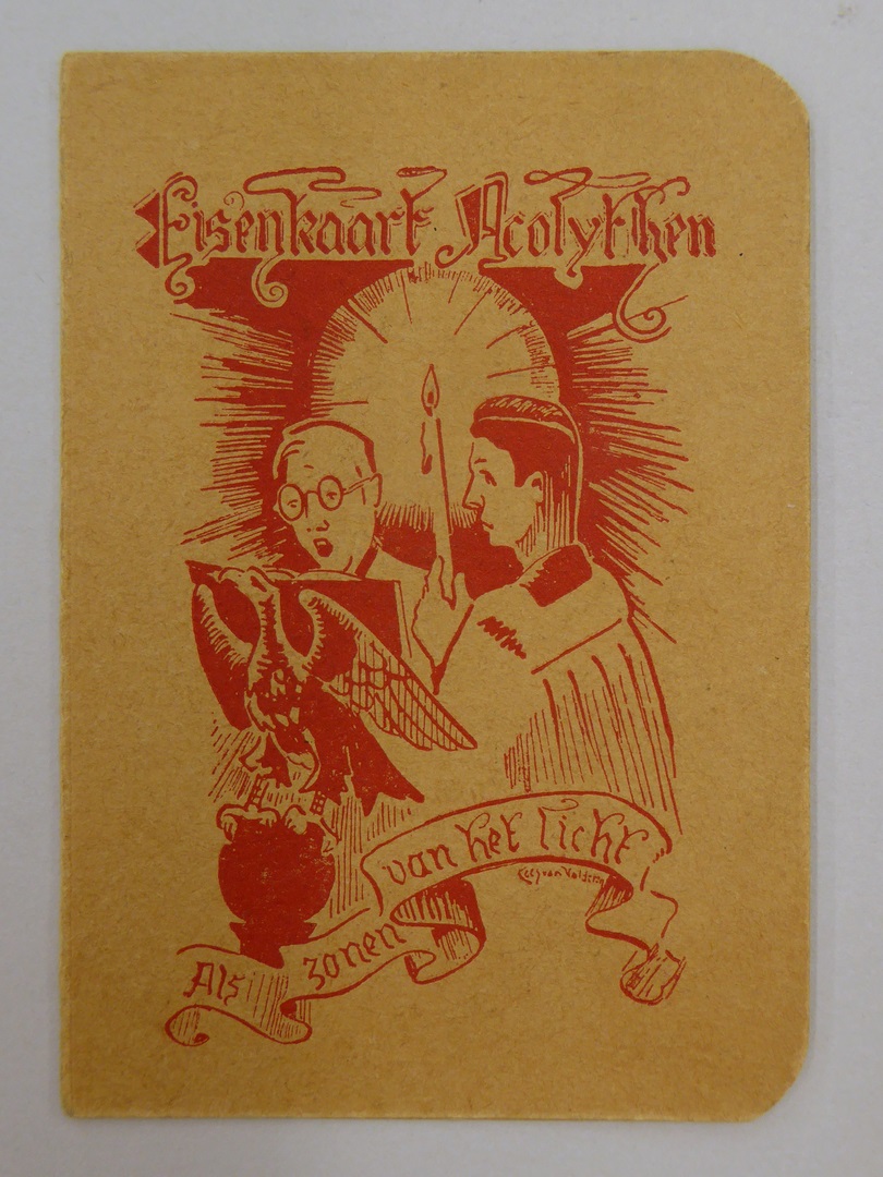 Eisenkaart acolythen Katholiek 'Serviam' Brakkenstein van P. v.d. Bos, gedrukt in rood