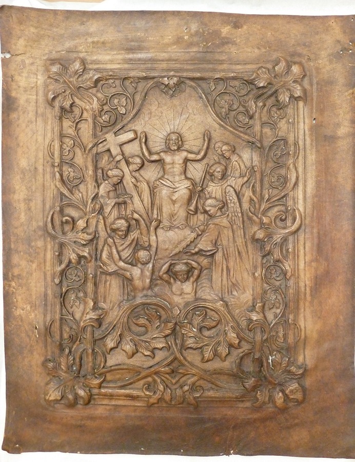 Leren geperste boekomslag voor een 'Sophiabijbel' met het laatste oordeel