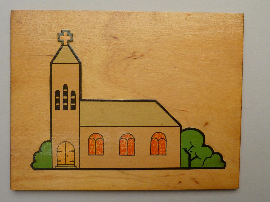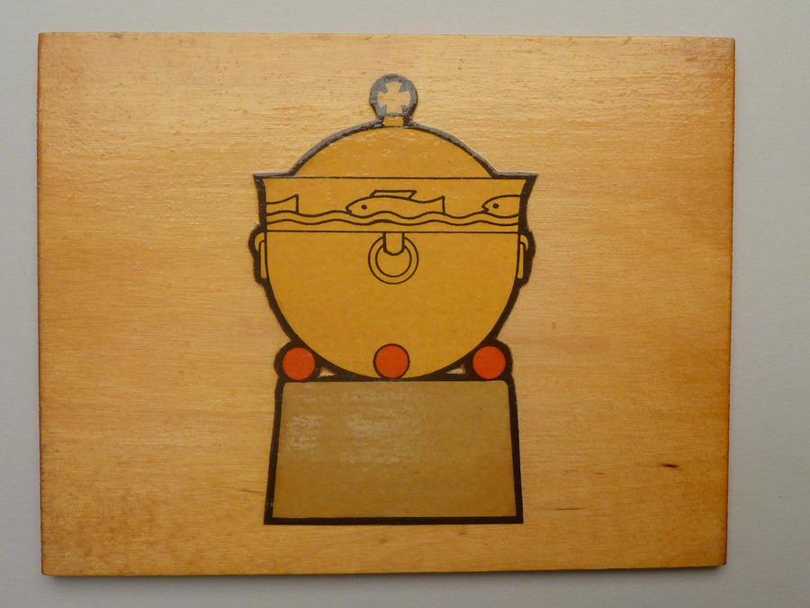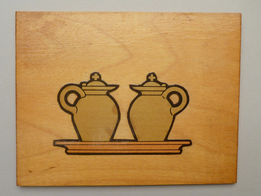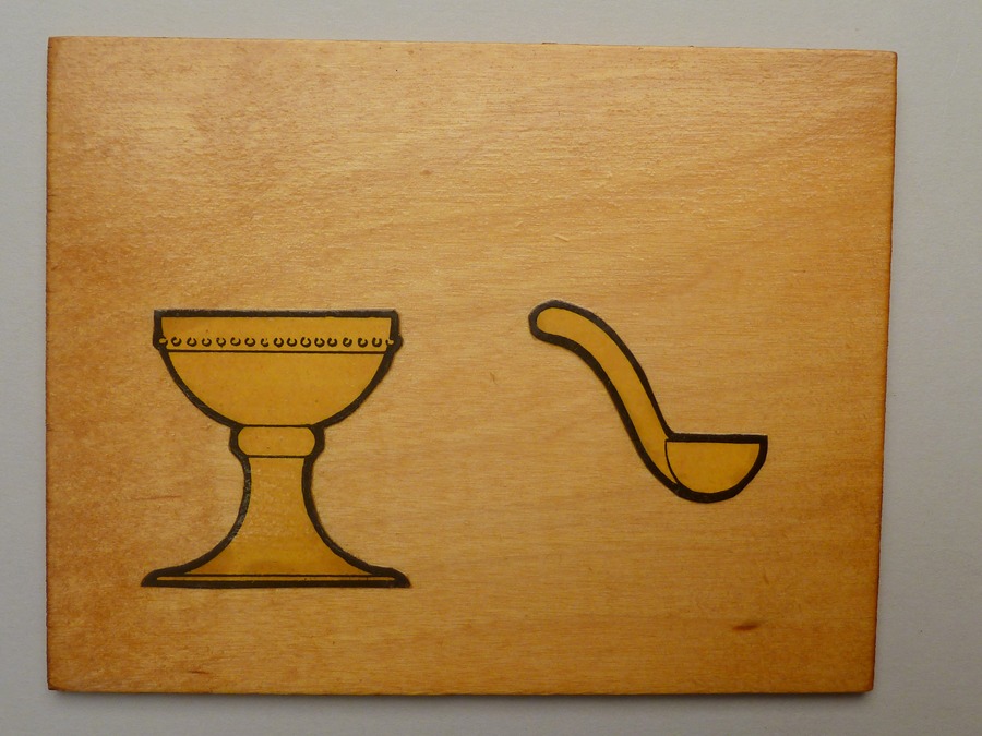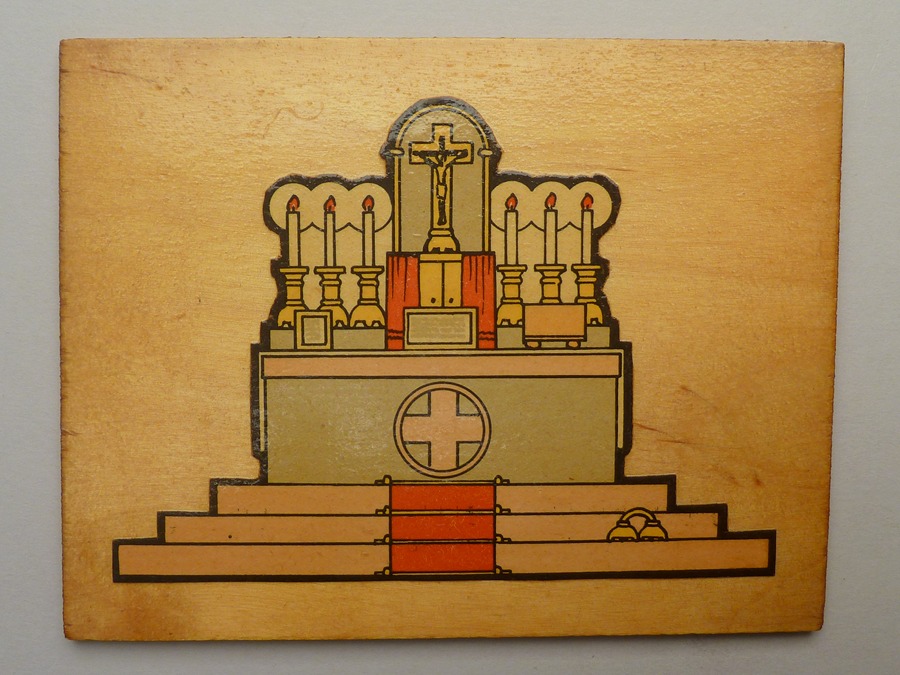 Bordjes (36 stuks) met plaatjes van liturgisch gerei voor Montessori-onderwijs