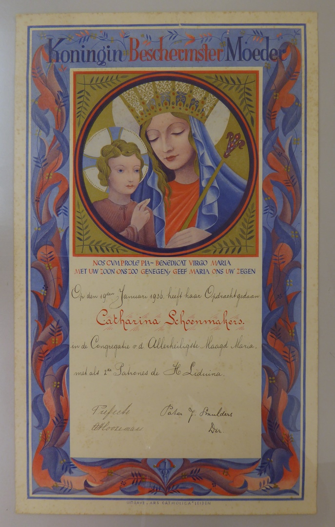 Diploma Catharina Schoenmakers voor opdracht in de Congregatie van de Allerheiligste Maagd Maria