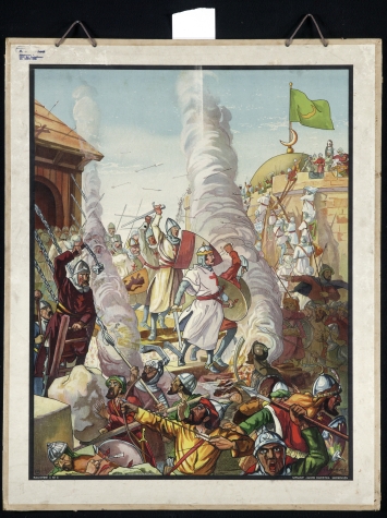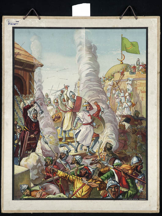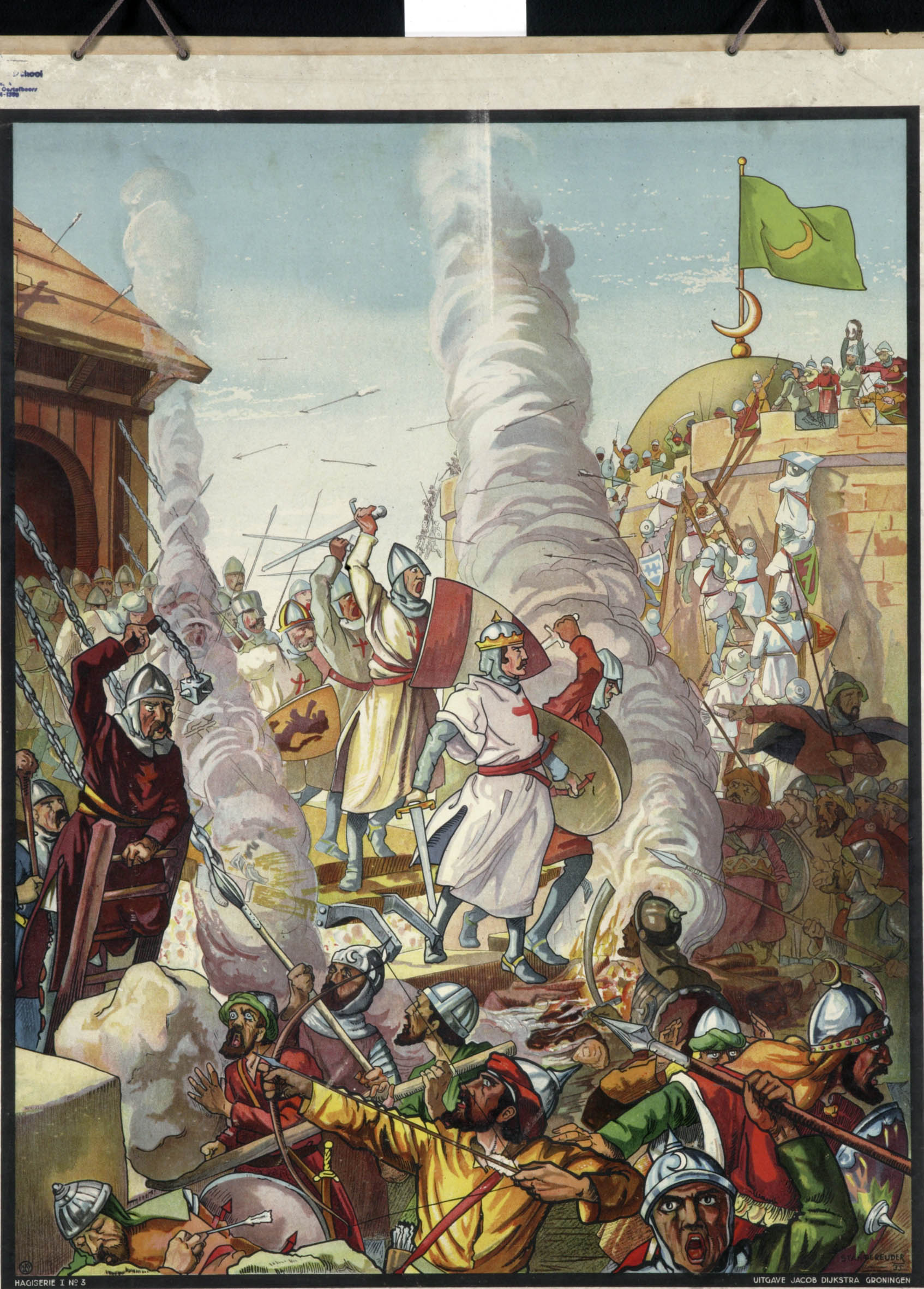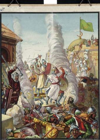 Schoolplaat uit Hagiserie I, nr. 3: Kruisvaarders bestormen stad