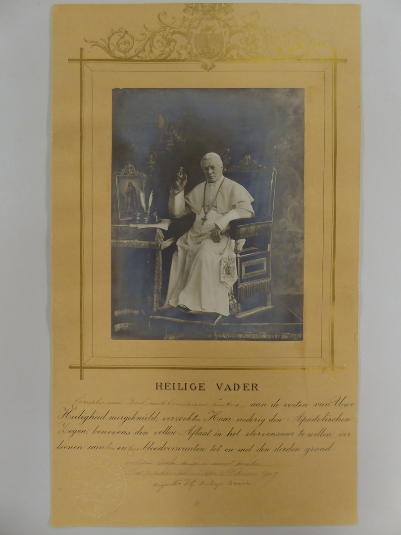 Apostolisch zegenformulier voor Cornelis van Baal met foto van paus Pius X