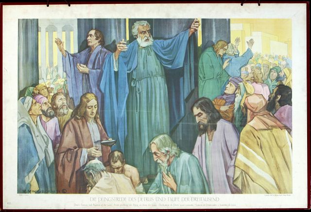 Schoolplaat: Eerste prediking van Petrus en doop der 3000, nr. 112
